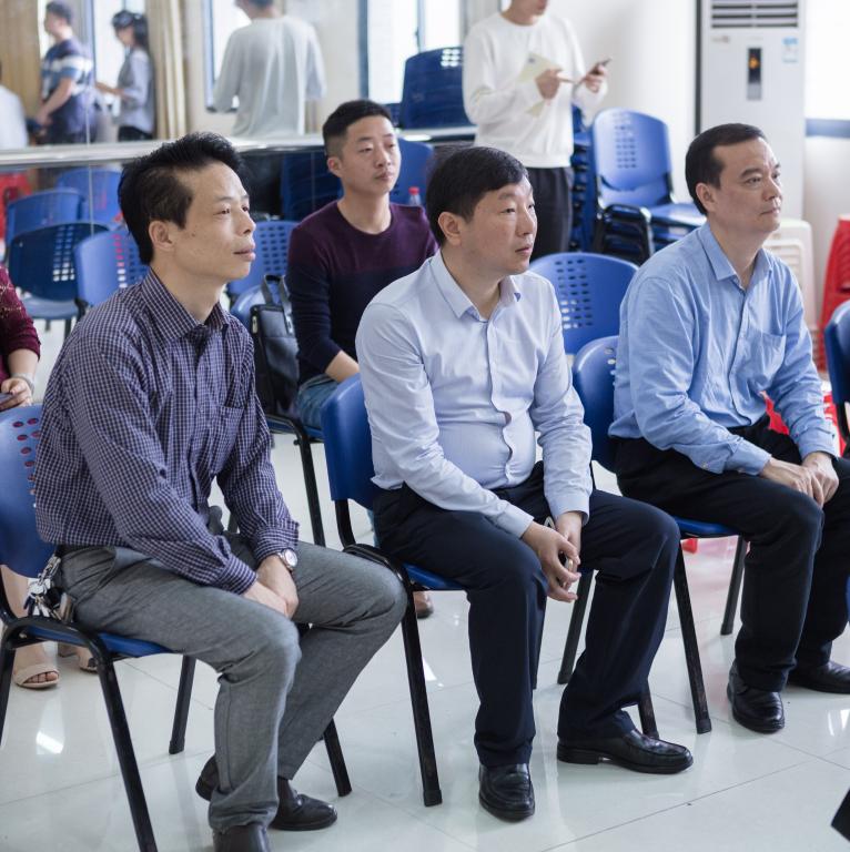 谭献良(中)和雷存喜(右)副校长及学工部长龙文观摩大赛