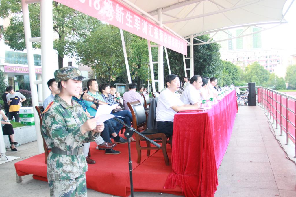 首先举行国旗、校旗升旗仪式,接着全体新生军训方阵接受学校党委书记罗成翼检阅。军训方队以分列式表演形式向全校师生汇报军训成果,军训教官们表演了军体拳,获得师生们的热烈掌声。