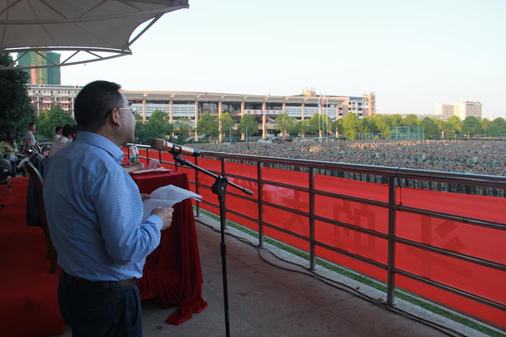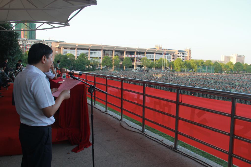 党委委员、副校长谭献良作军训总结。他指出,今年学校军训工作有三大特点:一是全体参训同学,文明上进,不怕苦、不怕累;二是国防教育和入学教育有机结合;三是辅导员和教官工作积极主动,认真负责。