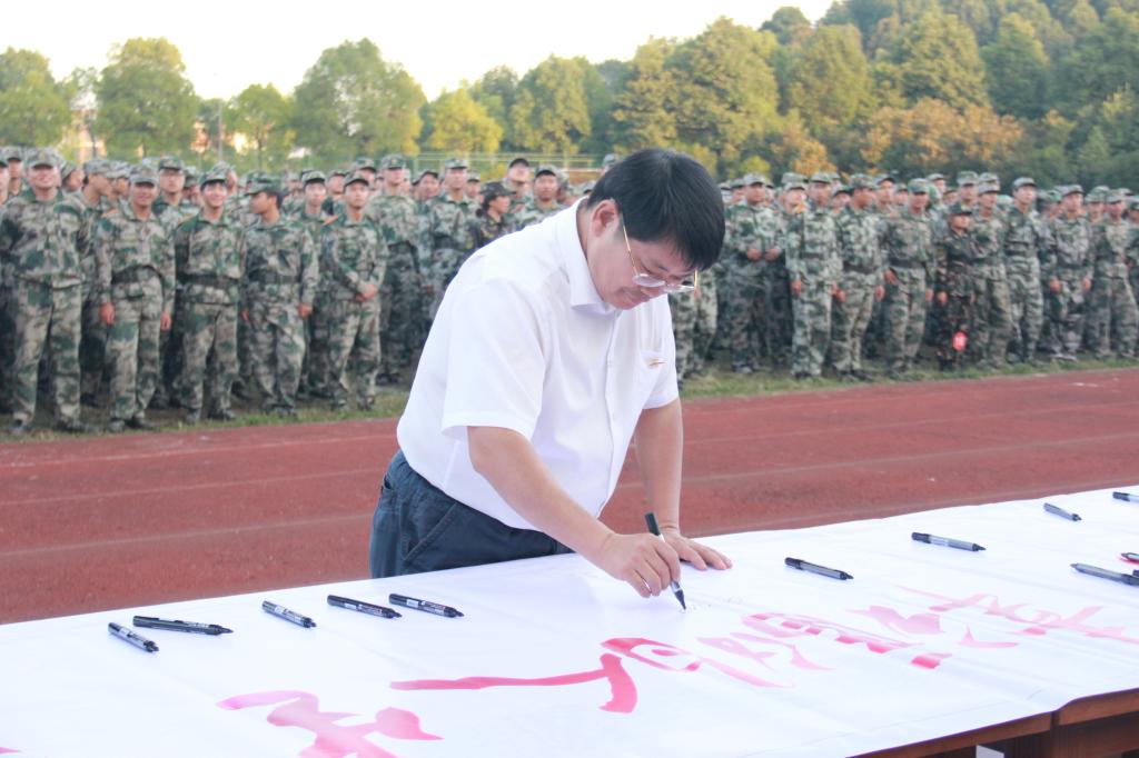 9月29日下午,2018级新生军训汇报总结暨“奋斗的大学∙幸福的人生∙强大的祖国”主题签名活动在塑料田径场隆重举行。同学们以飒爽英姿、整齐步伐、嘹亮口号接受学校领导和广大师生的检阅。校领导罗成翼、李建奇、汤放华、夏宏宇、姚春梅、郑卫明、何振、雷存喜、谭献良、李斌,相关处室、二级学院负责人,辅导员、新生班主任以及近5100名新生参加军训汇报总结表彰大会,党委副书记、校长李建奇主持。
