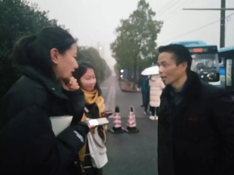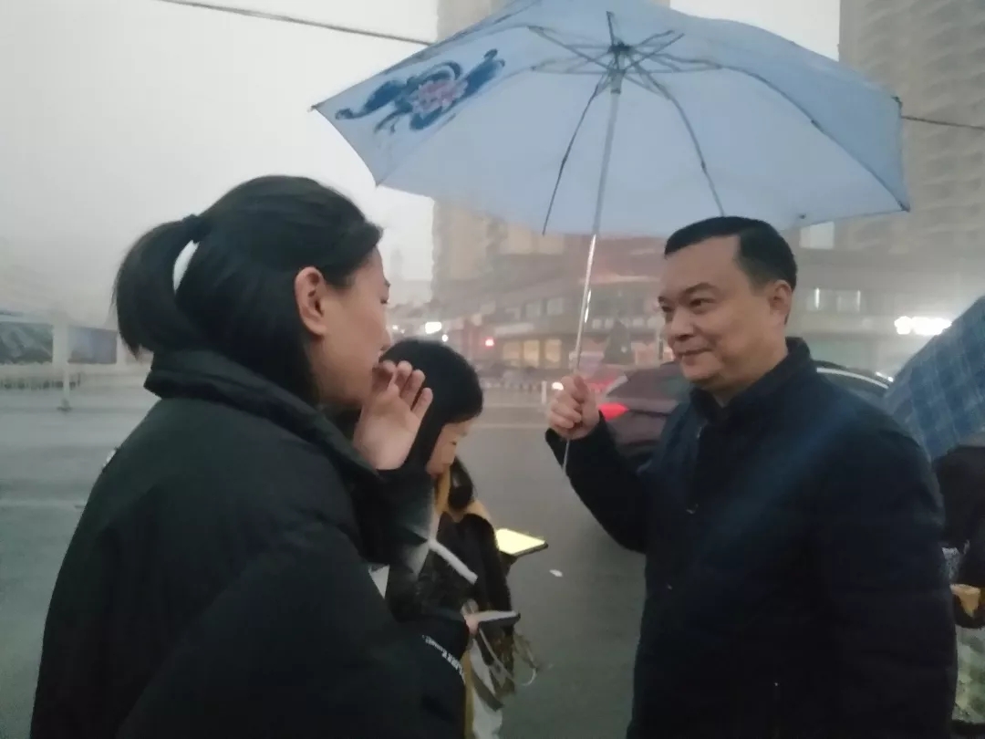蒙蒙细雨中,雷存喜副校长送考研学生:祝福她们考出水平考出好成绩