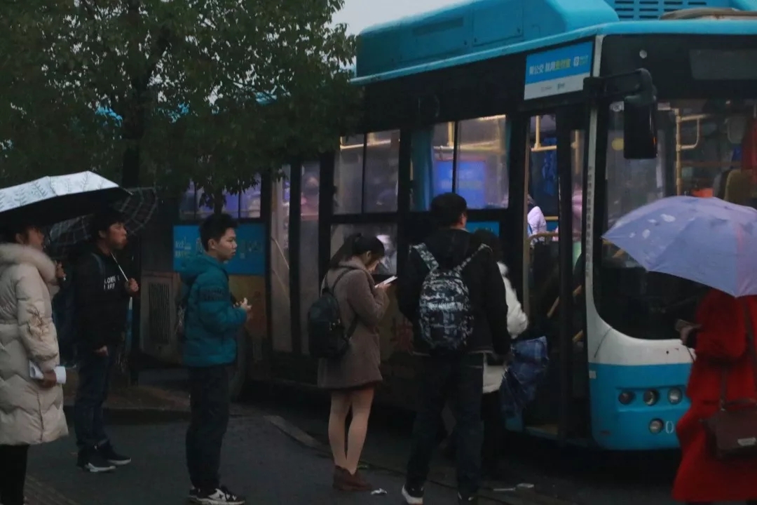 考研学生纷纷踏上学校为他们安排的考研专用车