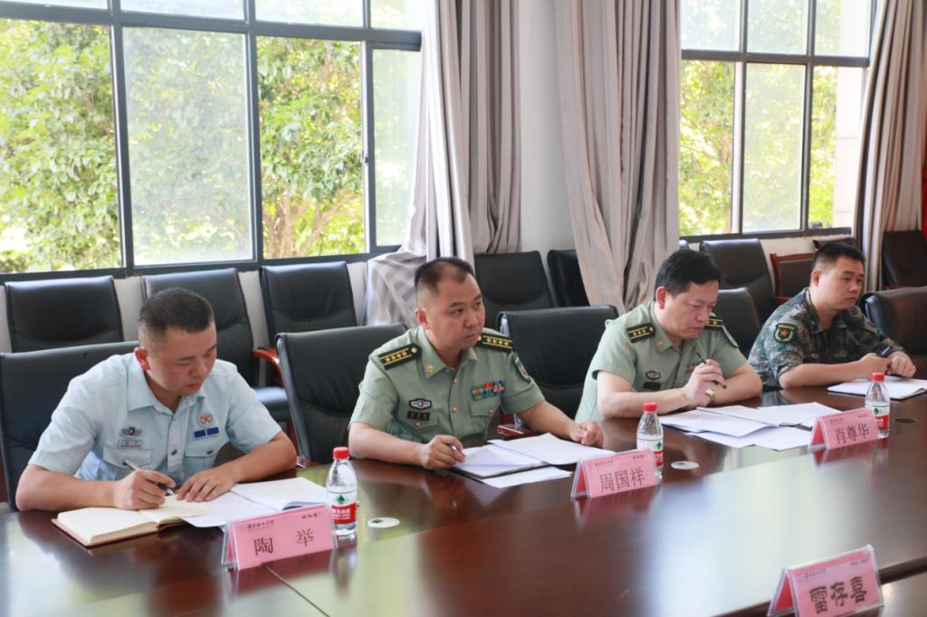 6月17日上午,益阳市征兵工作领导小组副组长、益阳军分区副司令员周国祥,市征兵办主任、军分区动员处处长肖尊华等一行4人来我校调研毕业生征集工作。学校党委委员、分管武装工作的副校长雷存喜,学生工作部/武装部、招生就业处等部门负责人,各二级学院主管领导、征兵专干等参加此次调研。