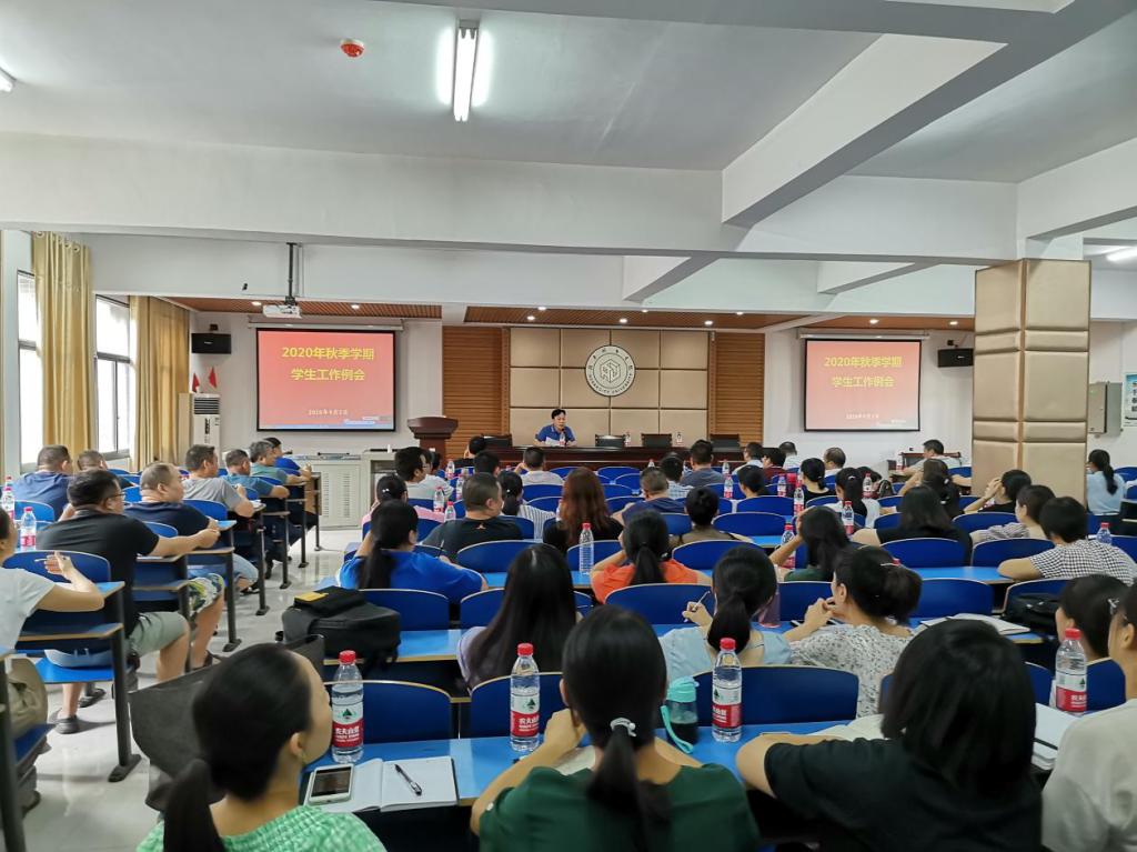 9月3日下午,我校在二办公楼310会议室召开了2020年秋季学期学生工作大例会。学生工作部、招生就业处、团委、教务处、基建与后勤管理处、保卫处等部门负责人及各二级学院党委副书记、全体辅导员出席了会议。会议由学生工作部部长贺正宜主持。