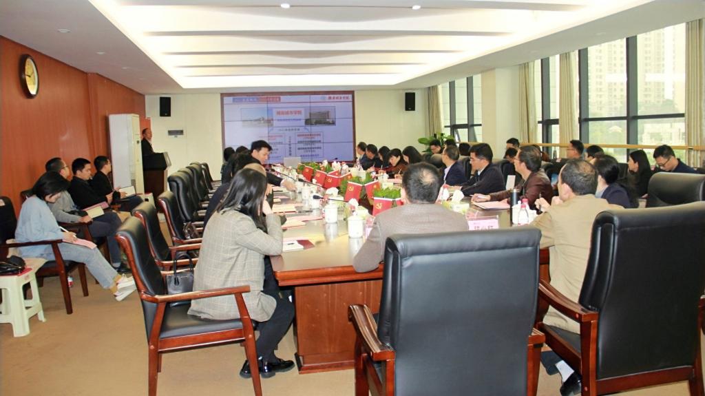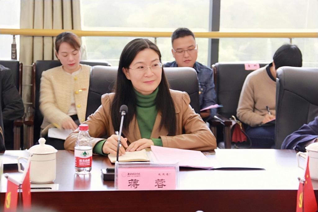 袁志成代表学校对蒋蓉一行表示热烈的欢迎,并简要介绍了我校近年来的发展概况、特色优势和综合改革情况。蒋蓉就湖南一师的办学特色和学生管理、共青团工作方面做法和经验进行了介绍。