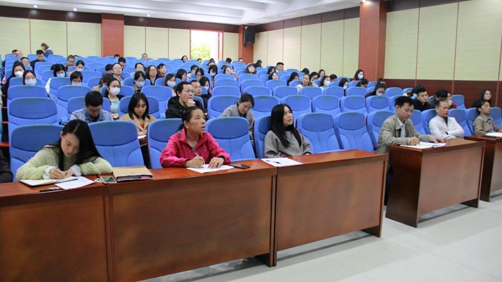 10月28日上午,“辅导员心理约谈方法与技巧”专题讲座在建筑楼学术报告厅举行,讲座由学生工作部大学生心理健康教育中心主办,学生工作部部长余洪主持,各二级学院副书记、全体辅导员、部分班主任代表、大学生心理健康教育中心全体老师共计百余人聆听讲座。