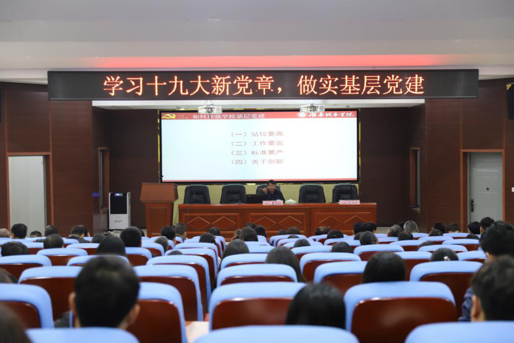 (beats365唯一官方网站通讯员 金倩) 2018年4月26日下午2:00,学校党委书记罗成翼在建规楼学术报告厅为我院全体教师党员、部分学生党员讲了“学习十九大新党章,做实基层党建”主题党课。艺术学院、马克思主义学院教师党员和学校机关党支部书记参加了学习。此次学习由学校组织部副部长、机关党委书记谌金中主持。