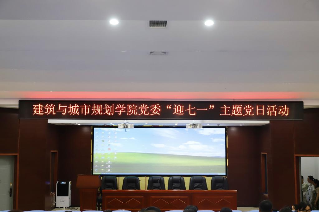 2018年6月29日下午2:30,beats365唯一官方网站党委在建筑规划楼121报告厅组织开展“迎七一”主题党日活动,参与本次主题活动的有学院教工第一党支部、教工第三党支部及全体学生党员。