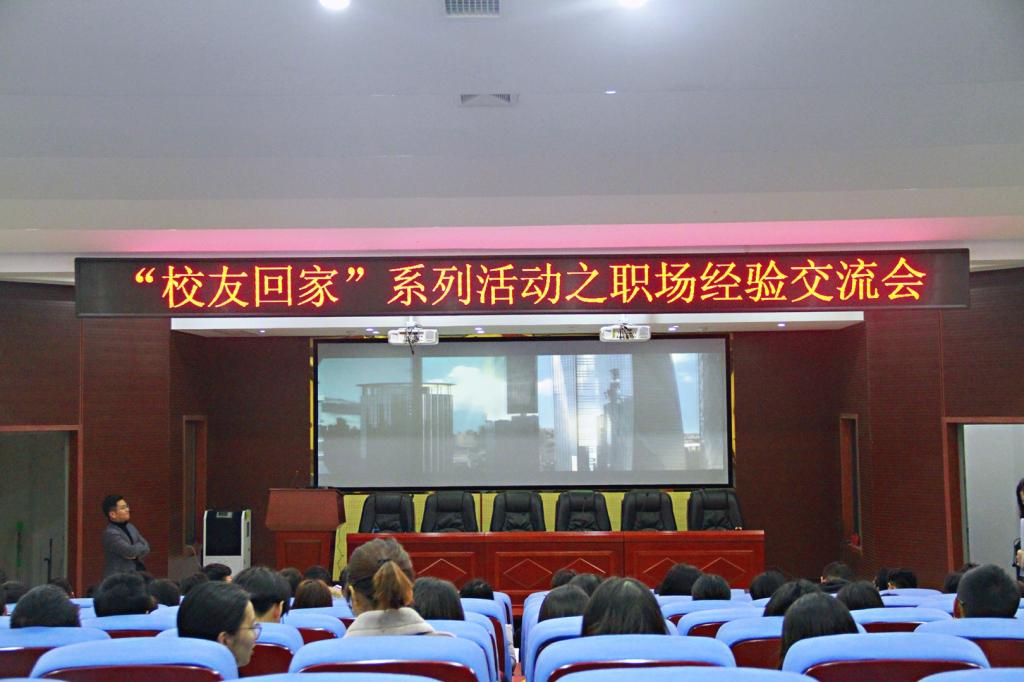 本次活动分两场进行。第一场是洲宇设计集团柴玲校友的演讲。她介绍了入职以来的自己奋斗打拼的情况,她强调在职场中一定要能吃苦、要敬业、要精益求精,这样才能很快站稳脚跟,取得更好的发展平台。柴玲学姐入职三年以后便开始了她的创业之路,她和她的合伙人一起策划方案、开拓市场、商谈业务,经过近10年的努力,洲宇设计集团员工现已达700人之多。柴玲学姐接着介绍了公司的发展目标、人才引进和培养机制以及晋升通道,之后回答了在场学生提出的问题。